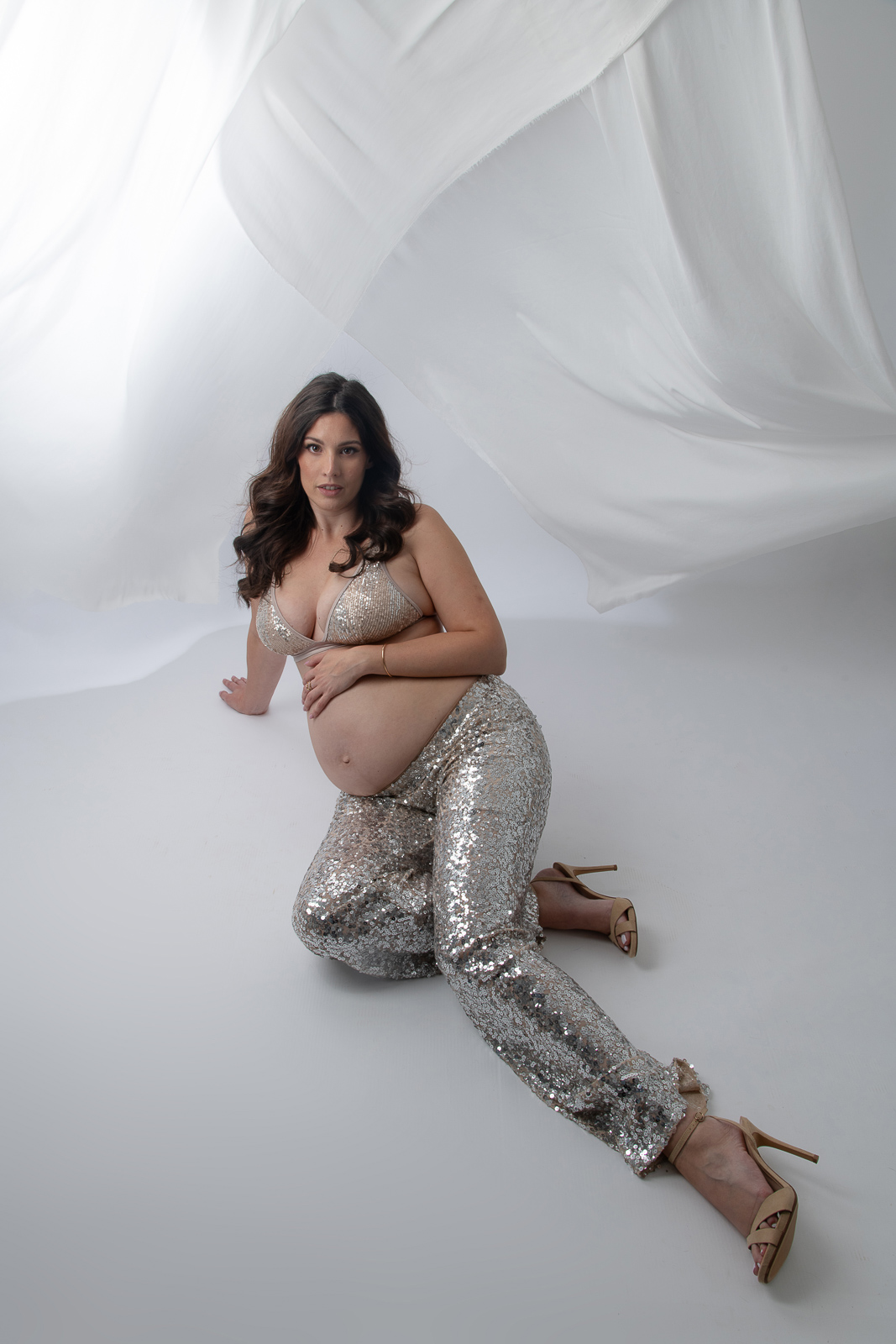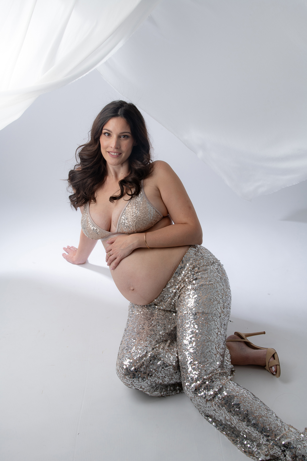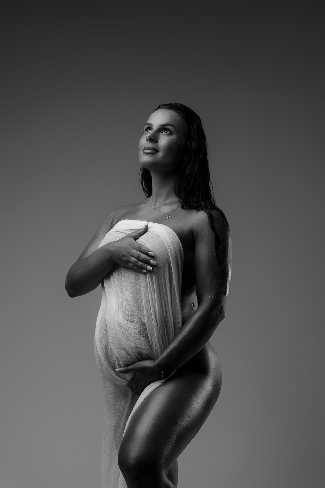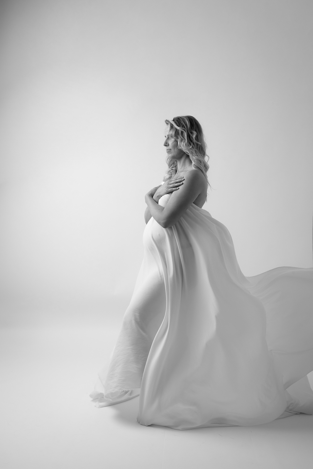 J’aime miser sur un côté assez glamour et partiellement dénudé, qui donne un effet à la fois doux et simple aux photos. J’ai plusieurs drapés à disposition ainsi que des longues robes en tulle, des peignoirs ou des bodys. Mais j’invite évidemment mes clientes à apporter plusieurs tenues qu’elles ont envie de porter également !